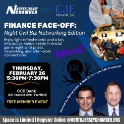 The North Jersey Chamber of Commerce (NJCC) is a community-minded, member-focused, non-profit business organization. Our mission is to foster the growth and profitability of our members via a variety of dynamic networking events, educational seminars, cost-saving programs, legislative advocacy, and member-to-member collaborative opportunities.